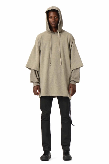 Rick Owens liefert Stücke direkt aus einer stilisierten Zukunft, mit starken Formen und dekonstruierten Silhouetten, die stark von der Verwendung von Schwarz, Grau und dunkleren Tönen geprägt sind.