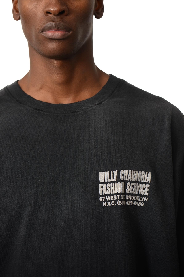 WILLY CHAVARRIA Fashion Services Buffalo Tee delivers a relaxed fit with a vintage wash for a naturally worn-in feel. Featuring screen prints on both the front and back, it makes a bold statement from every angle. Vintage wash. Front and back screen print.