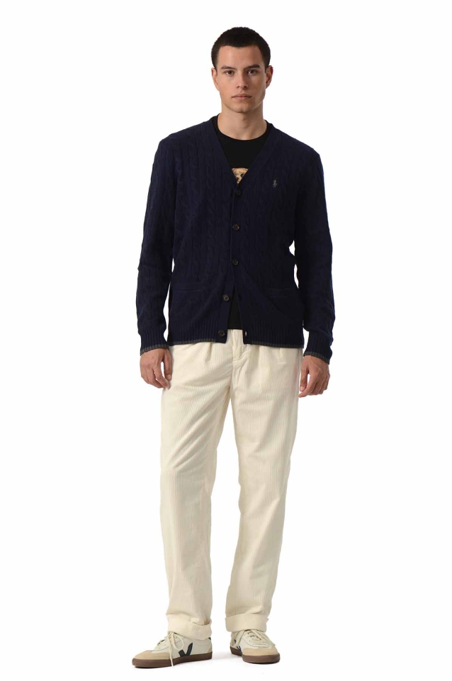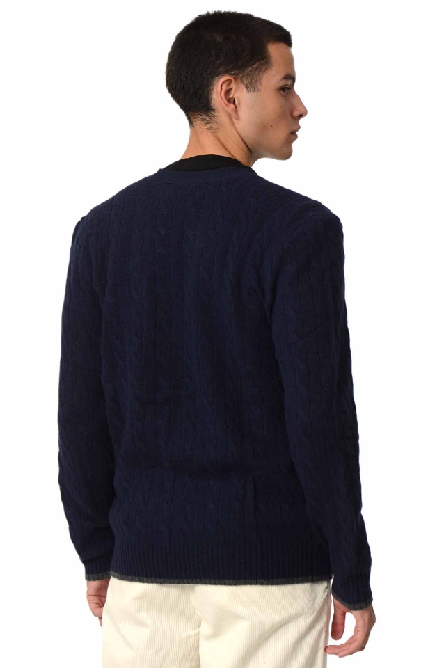 POLO RALPH LAUREN - Cardigan en laine et cachemire à mailles torsadées - Marine