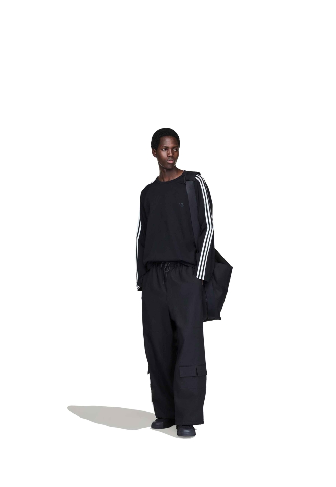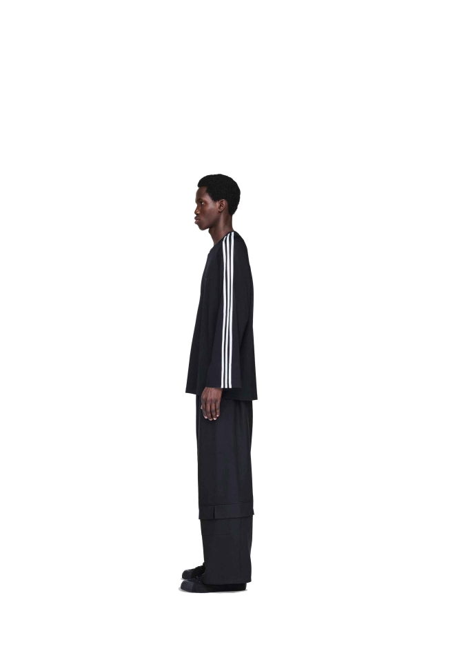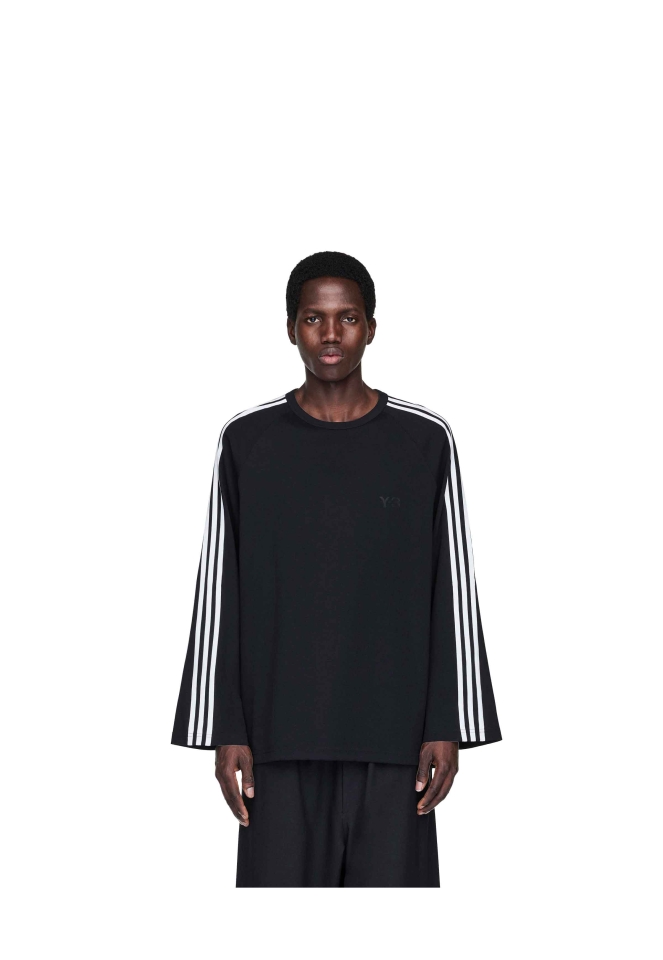 T-shirt Y-3 de manga comprida com 3 riscas em fio Preto