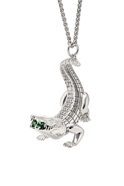 Sterling silver fine rope chain necklace featuring an Alligator pendant with green stone. Polished finish. Lobster clasp fastening. Chain length: 56cm Pendant measures: 44mm x 4mm 100% 925 sterling silver, 18k gold plating Made in Italy