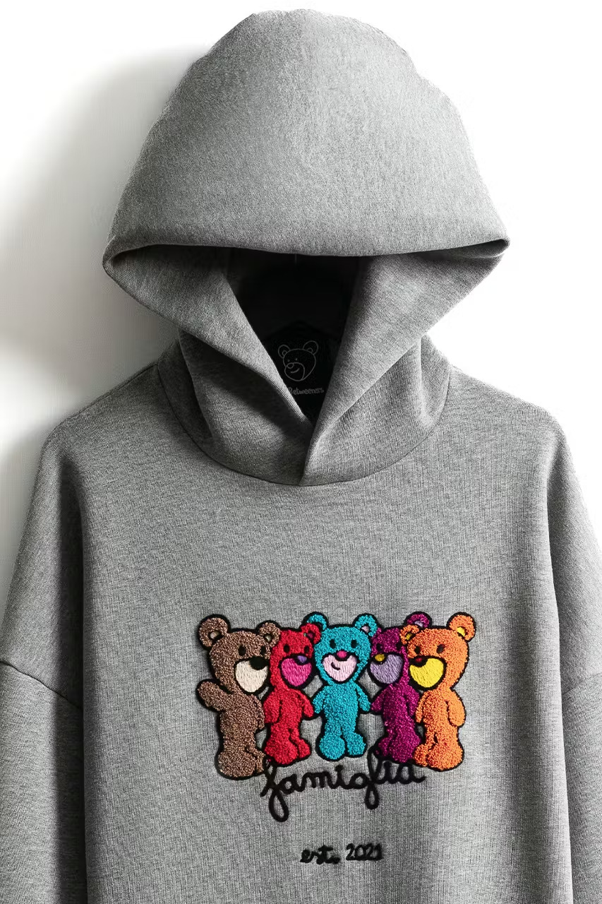 inBetweeners’ custom embroidered garments feature colourful bears and a QR code to claim a virtual version of the piece. The playful aesthetic of these bears is a major draw, bringing a sense of joy and positivity to the brand.
