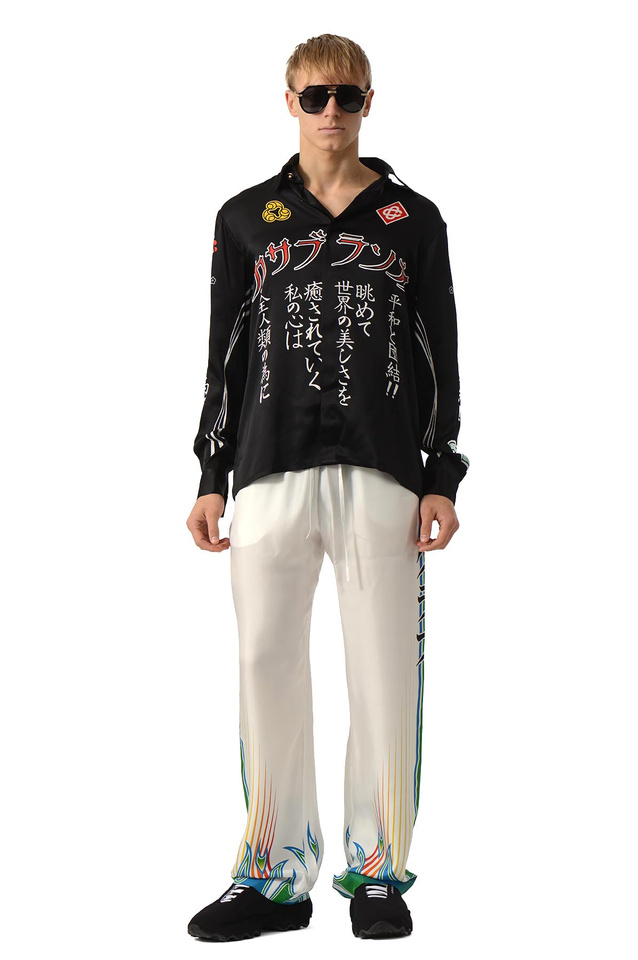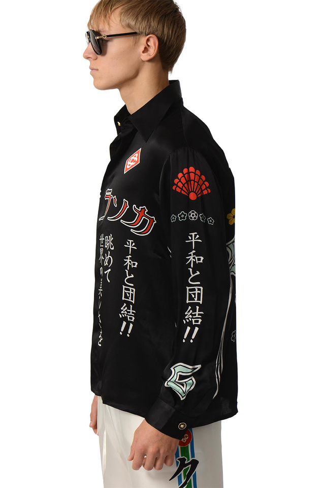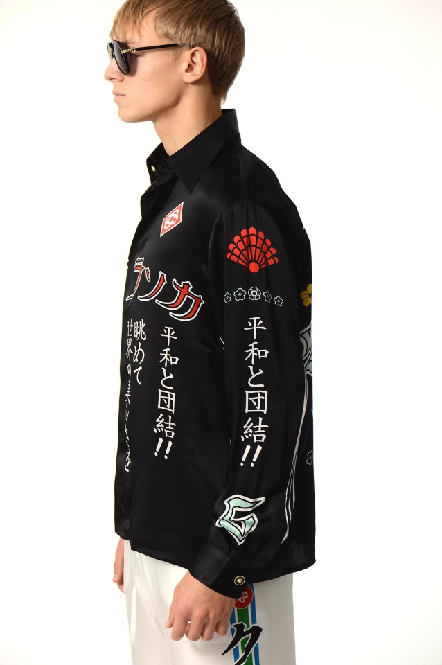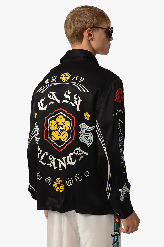 CASABLANCA Emblem Long Sleeve Silk Satin Shirt