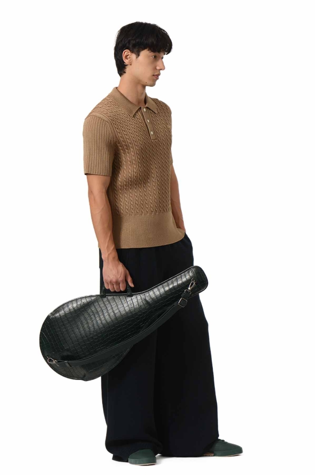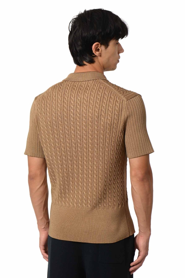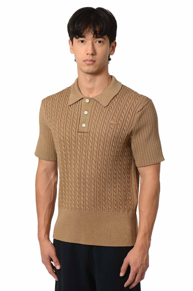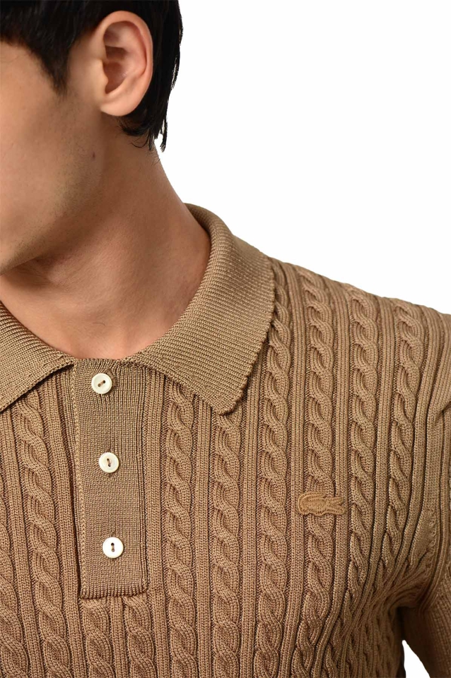 LACOSTE Cable Knit Polo-Shirt Cookie